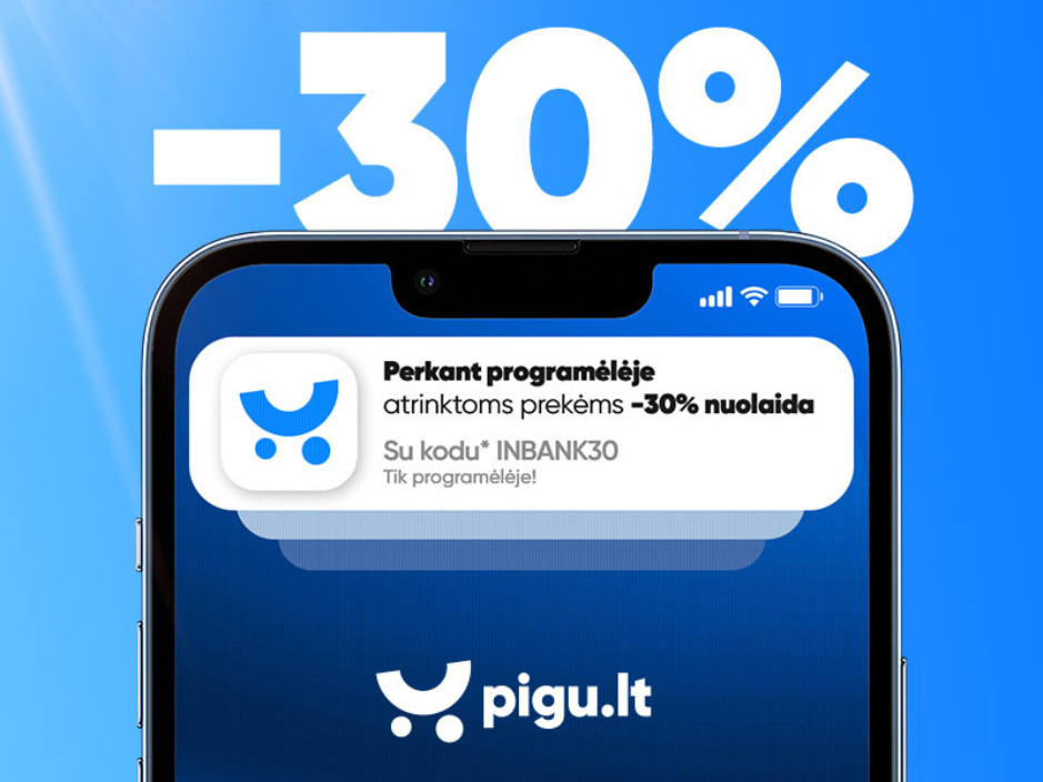 Elektronika, sportas, laisvalaikis – viskas vienoje vietoje. Rinkitės tai, ko reikia, ir apsipirkite patogiai. Su kodu INBANK30 gaukite 30% nuolaidą atrinktoms prekėms Pigu.lt programėlėje.